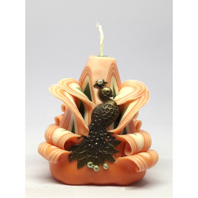 Hosszú égésidővel a lakás, vagy helyiség méltó dísze lehet ez a mártott, és faragott gyertya.